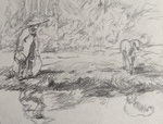 Studie in zwart wit met houtskool waarbij met minimale lijnen het menselijk lichaam is neergezet.