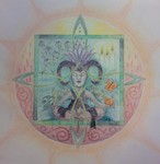 Geboortemandala Famke. Volgens numerologie uitgewerkte aquareltekening met bijbehorende beschrijving van betekenis.