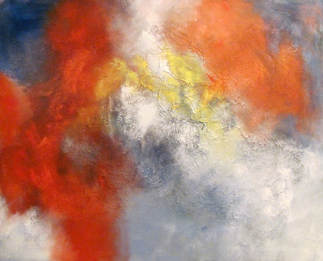 Lyrisch abstract, mixed media, gelaagd Clouds of red,white and blue make me think of you..