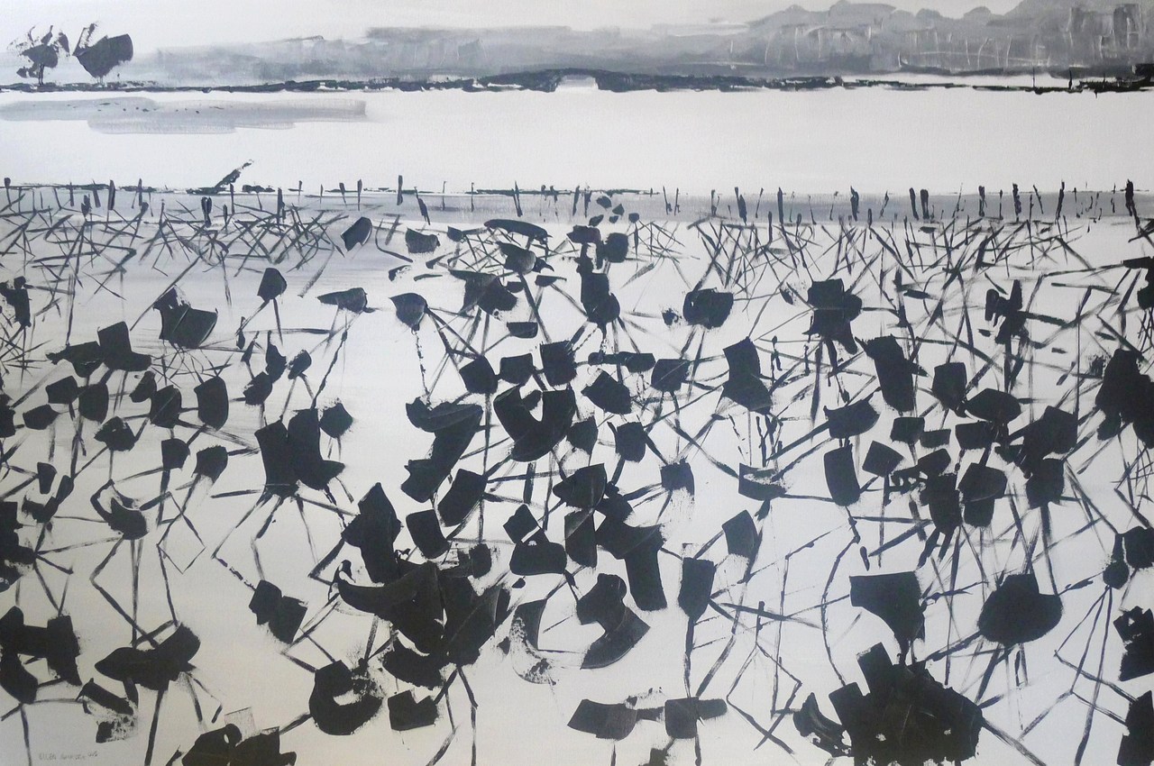 Wit Abstract Grijs Zwart Landschap Acryl Oil Canvas Olie Doek Painting Acrylic Black Chinese Meer Verf Chinees Japans Gray Japanese Lotussen Verwelkte Wilted Lotuses