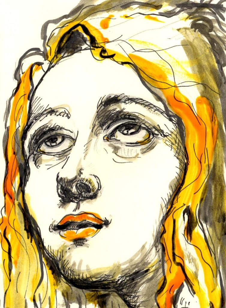 Trance Girl Meisje Papier Inkt Paper Ink Eyes Ogen Geel Yellow Rood Red Haar Hair