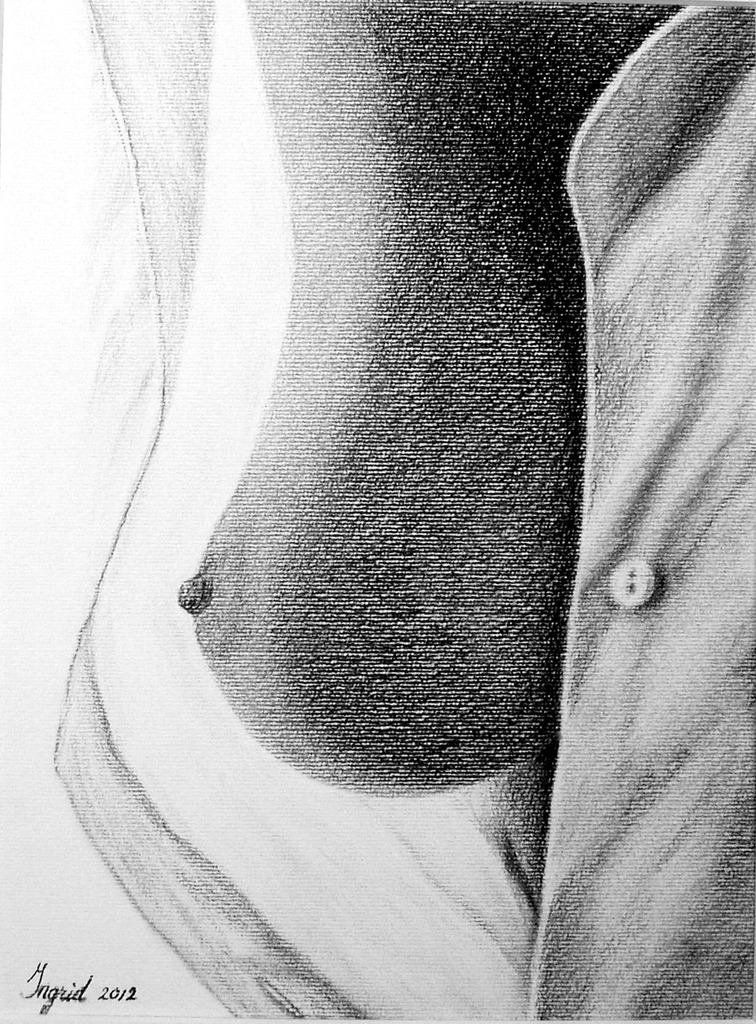 Ik ben Ingrid de Jong en leg mijn ziel en zaligheid in schilderen en tekenen. Een aantal jaren geleden ben ik schilderlessen gaan volgen. Ik kan me er totaal in verliezen en het stimuleert enorm om te groeien en geïnspireerd te worden door anderen. Het meest gelukkig ben ik in de natuur, met al zijn schoonheid en verwondering. Een onuitputtelijke bron van rust en energie. Het afgelopen jaar heb ik een andere bron ontdekt, die van het naakt. Eveneens onuitputtelijk en vol passie, erotiek en schoonheid. Ik vind het leuk om mijn schilderijen te voorzien van een kort verhaal of een gedicht, welke op www.ingriddejong.nl te lezen zijn.