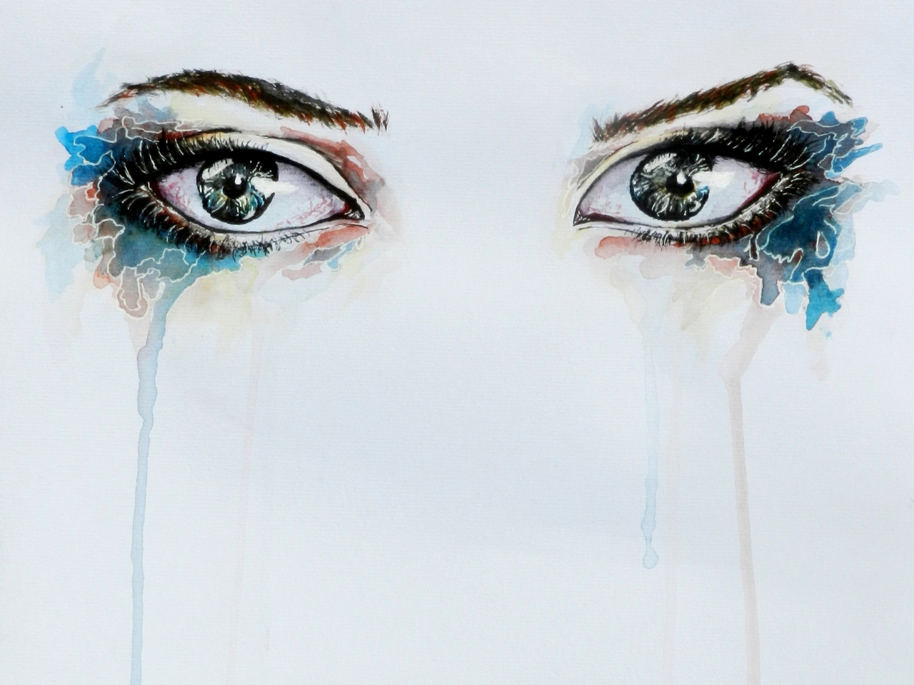 Prachtig minimalistisch schilderij van ogen in waterverf. De kleuren kunnen enigzins afwijken (in 'real life' zie je tevens de subtielere kleuren meer).