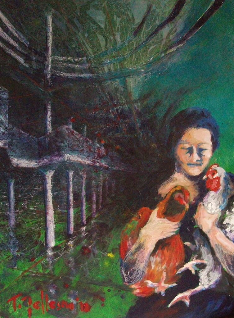 Ik schilder op een (sur)realistische wijze, vaak met een verborgen boodschap. Met acrylverf lukt het me het intrigerende van de mensen, dieren en dingen om me heen vast te leggen.