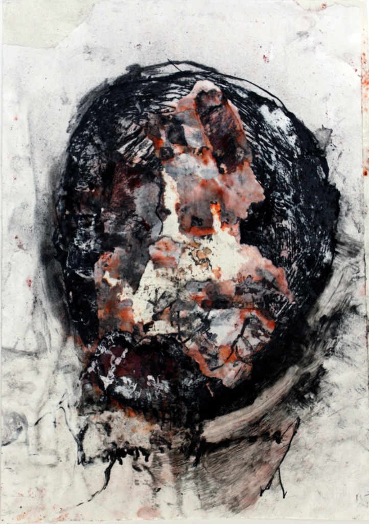 Inkt, krijt en acrylverf op papier (ingelijst)