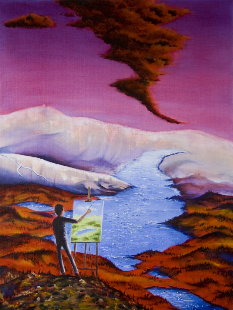 Schilderij Rood Paars Water Lucht Ezel Schilder