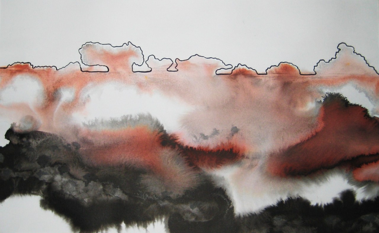 Landschap ontstaan door inkt in lijm te laten vloeien.
