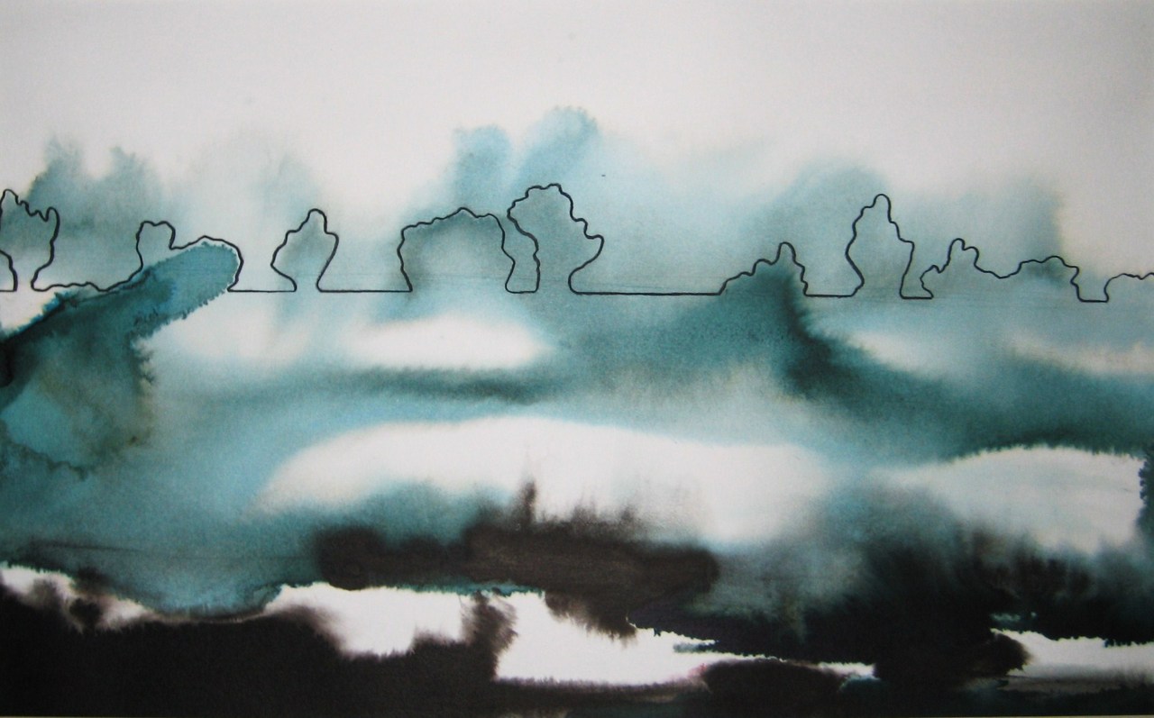 Landschap ontstaan door inkt in lijm te laten vloeien.