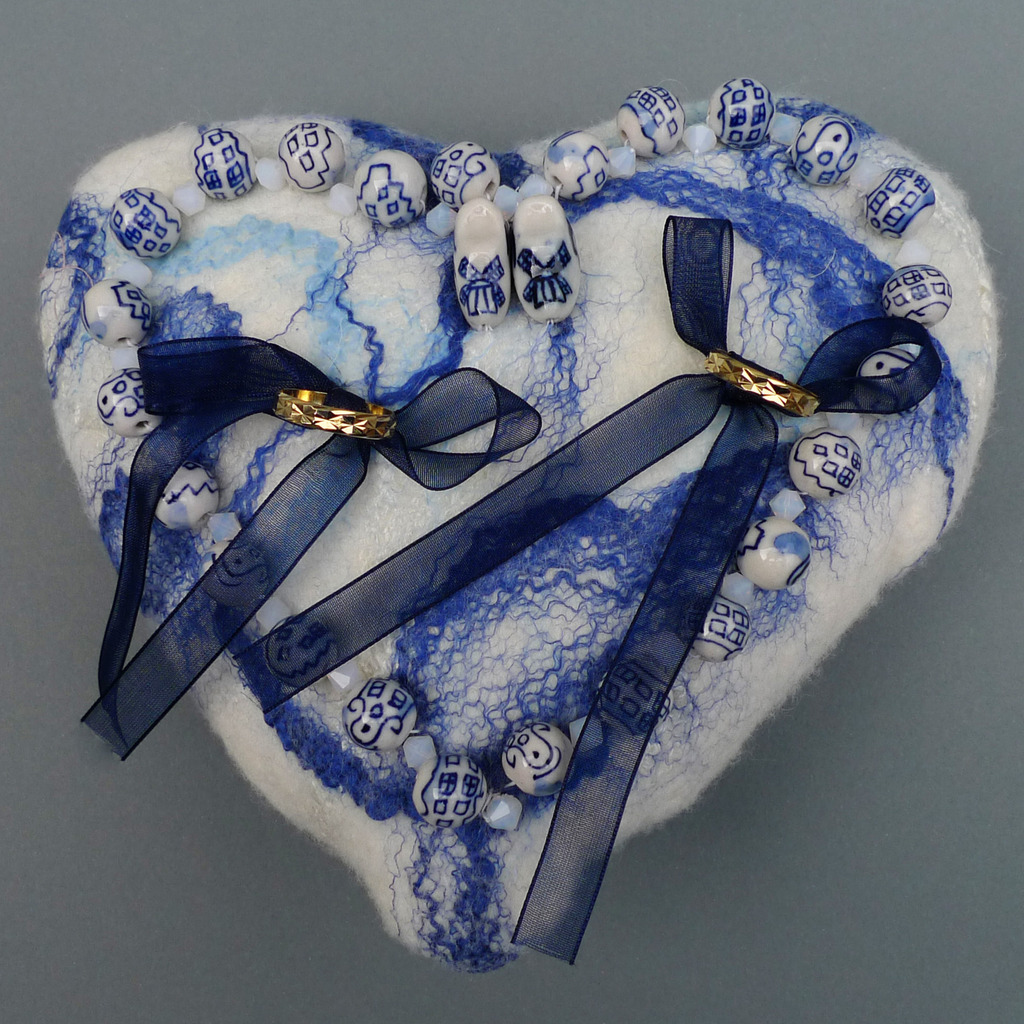 Blauw Vilt Holland Bruid Nederland Grachtenpand Delft Vilten Bruidsaccessoires Ringenkussen Bruidskinderen