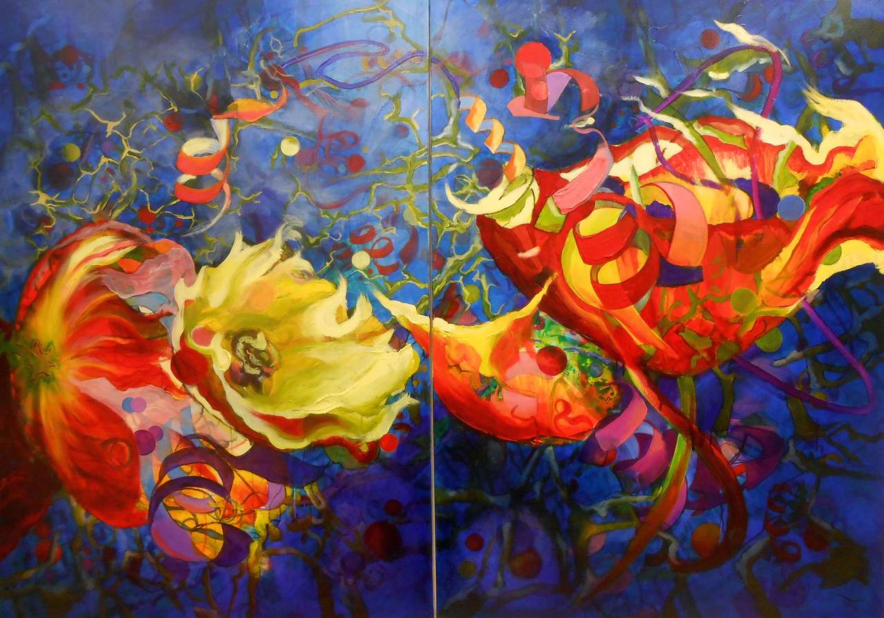 Abstract Experience Flowers Environment Poppies Seeds Diptych Molecules Petals Pollen Stems Proteins