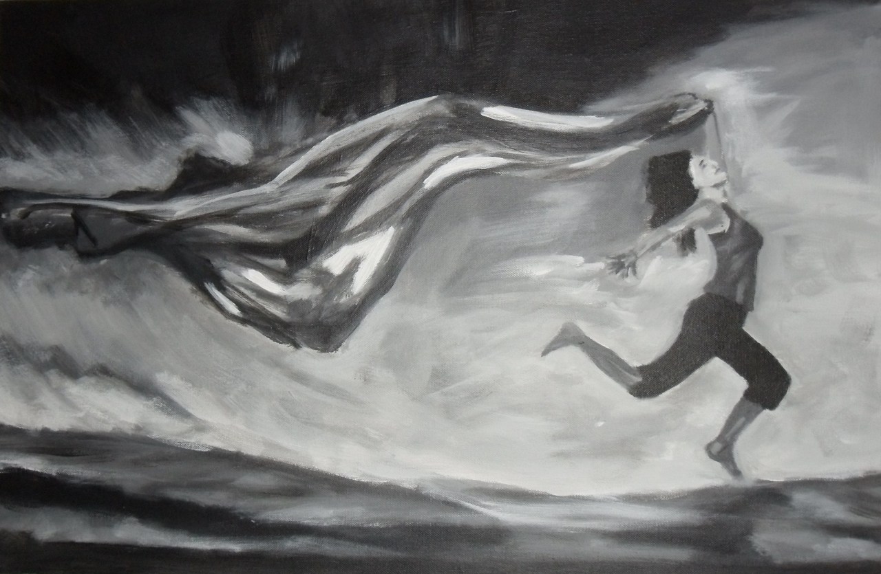 Vrijheid Energie Zwart-wit Lopen Bergen Lucht Laken Sport Meisje Gevoel