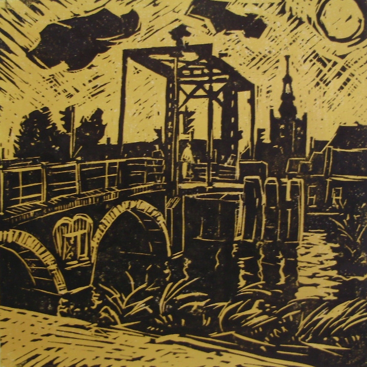 De Hoge Brug Overschie bestaat 350 jaar voor mij een reden om een linoleum snede van te maken