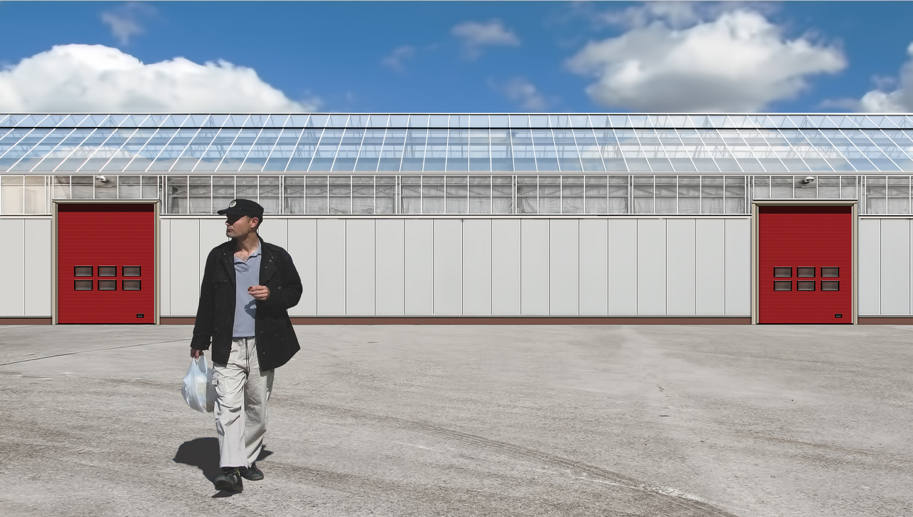 De chauffeur heeft zijn vrachtwagen weggezet en loopt nu naar zijn eigen auto om naar huis te gaan Onderwijl neemt hij iets te eten.