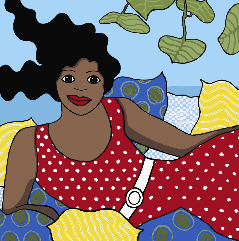 Dame ontspant in een tropische omgeving. Wel te bestellen als print op doek of papier in ieder gewenst formaat. Wil je deze afbeelding op een phone case, tas, kussen etc. ga dan naar http://fineartamerica.com/artists/trudie+canwood