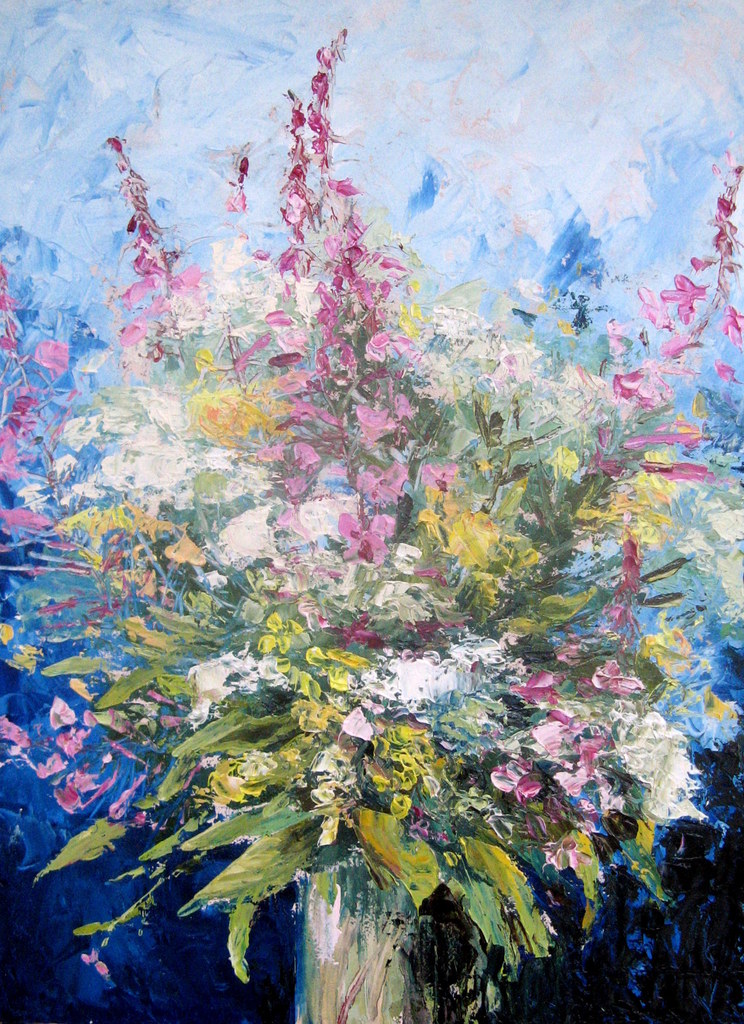 Geschilderd met paletmes tijdens m'n vakantie. Gewoon een bosje wilde bloemen uit de wegkant.