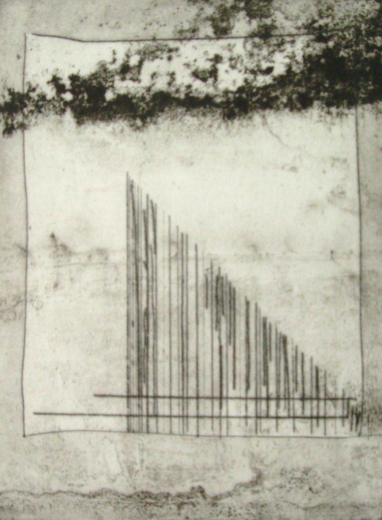 Al geruime tijd ben ik in mijn vrije tijd actief als etser. Het landschap is een telkens terugkerend onderwerp, wel is het werk in loop van de tijd wisselend meer en minder abstract geworden. Hoewel etsen vaak klein zijn (sommige van mijn etsen zijn postzegelgroot) werk ik ook graag met forse formaten.