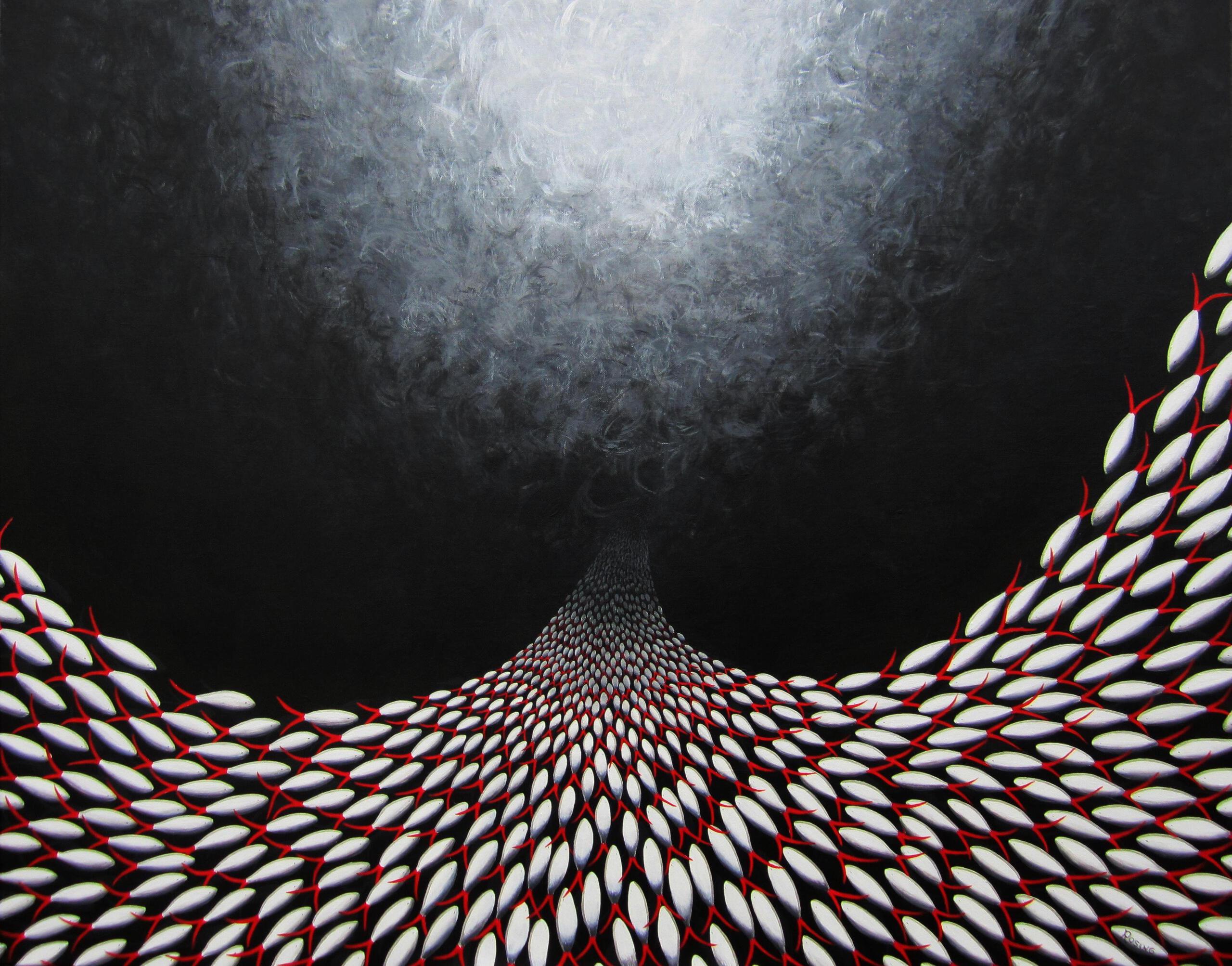 Wit Zee Grijs Rood Zwart Acryl Red Zilver Black Silver White Fantasie Vissen Oceaan Marieke Ocean Perspectief Fantasy School Sea Fish Gray Black-white Great-sardine-run Rosing