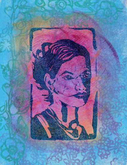 Portret afgedrukt in meerdere lagen.