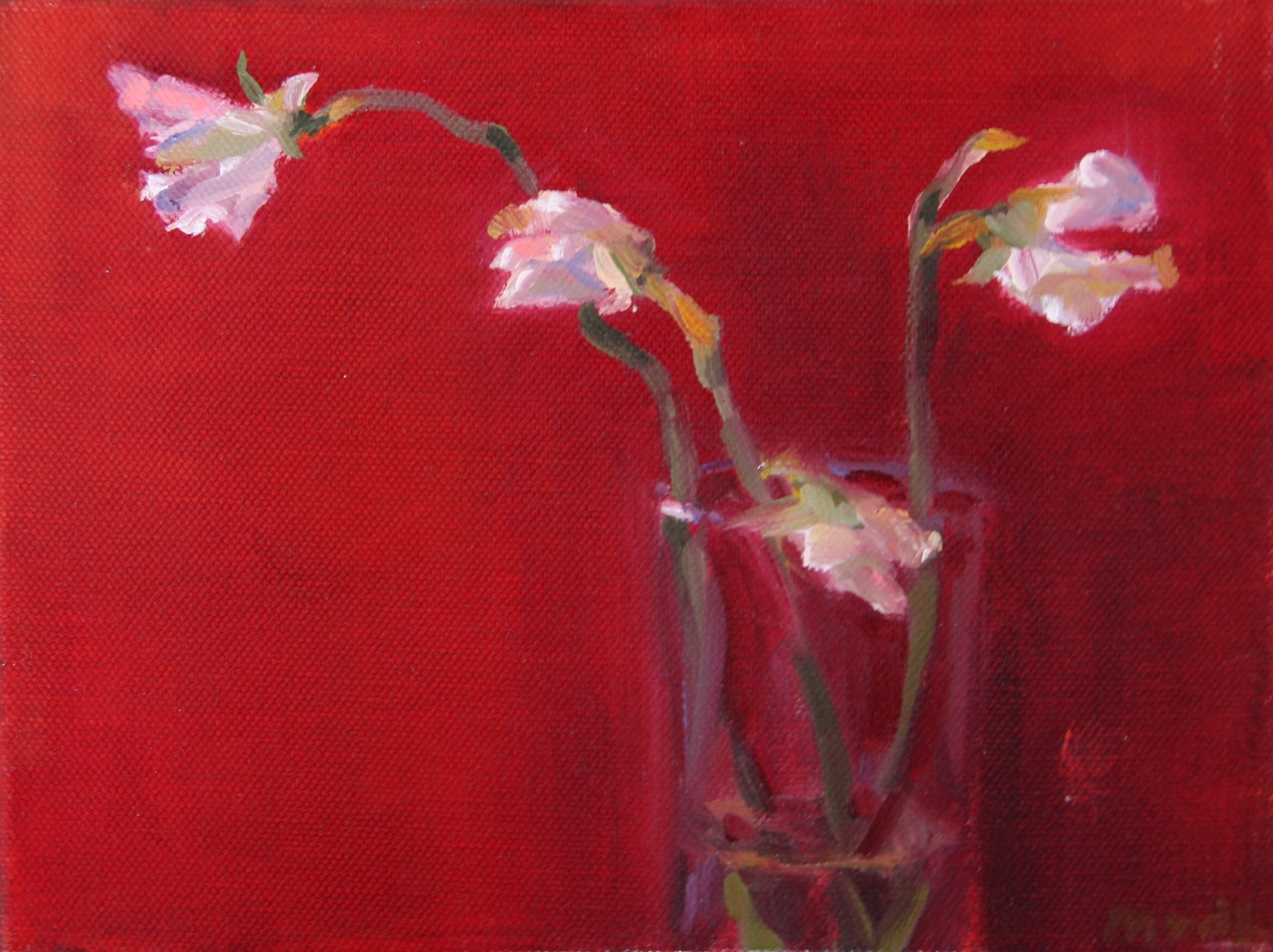 Enkele takjes tere lathyrus in een glas prachtig ingelijst