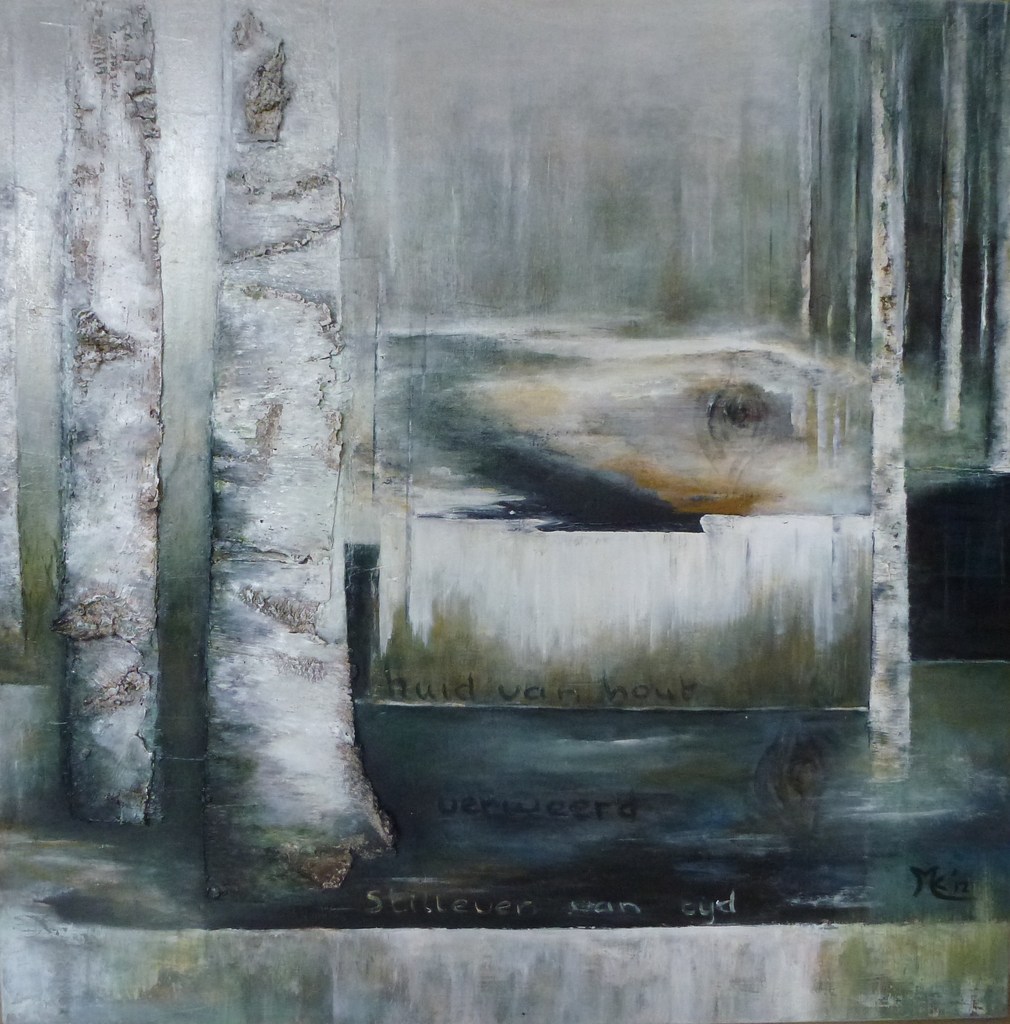 Huid van Hout, acryl collage op doek : 100 x 100 cm
