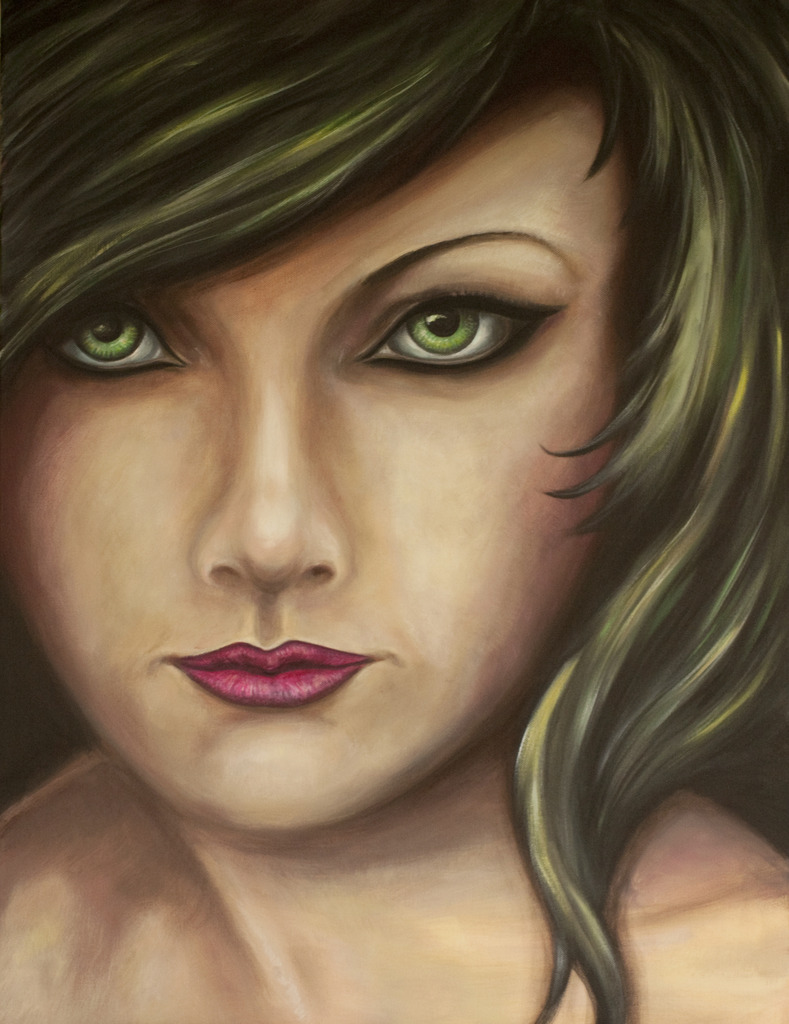 Meisje Acryl Vrouw Portret Ogen Jonge