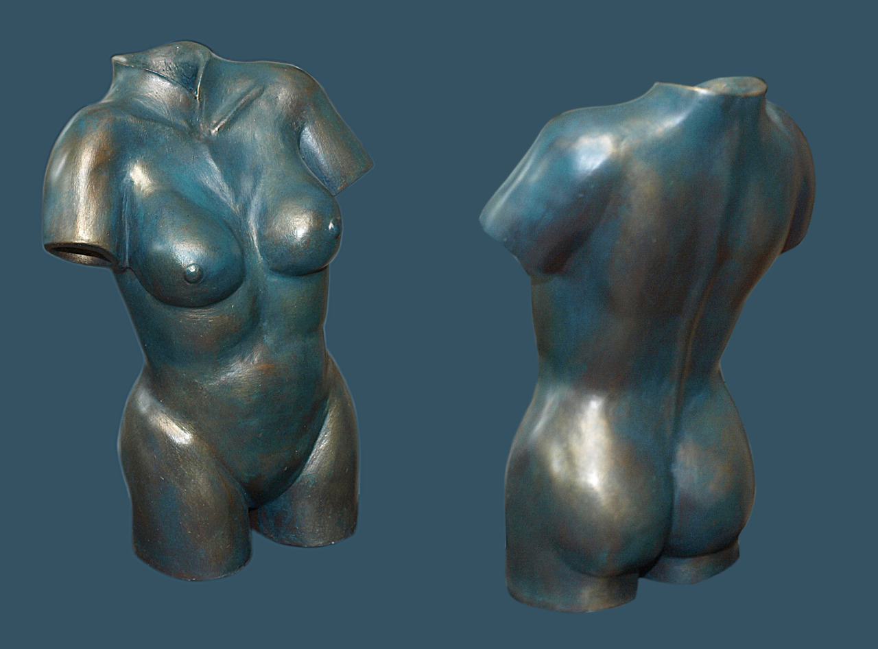 tors gebakken chamotte daarna in acryl brons kleur geverfd
