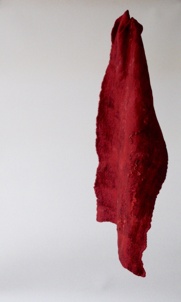 Wol Zijde Vilt Sjaal Stola Natuur Expressief Rood Wool Chiffon Felt Shawl Stole Nature Expressive Red