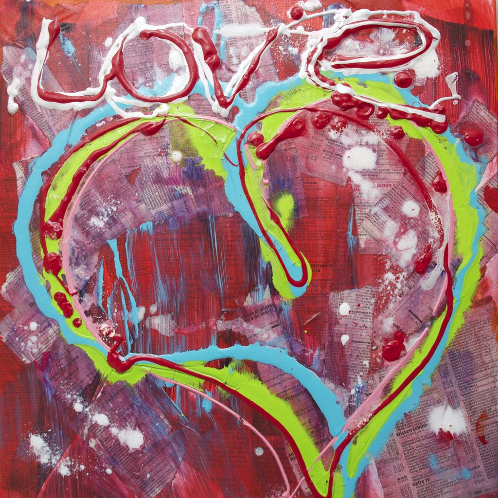 Moderne kunst in Neo-popart stijl geïnspireerd door Herman Brood en Corneille (CoBrA). Met spuitbussen, rollers en mallen van vliegenmeppers tot kanten strings breng ik emotie op het doek. 'Do you dare to feel'