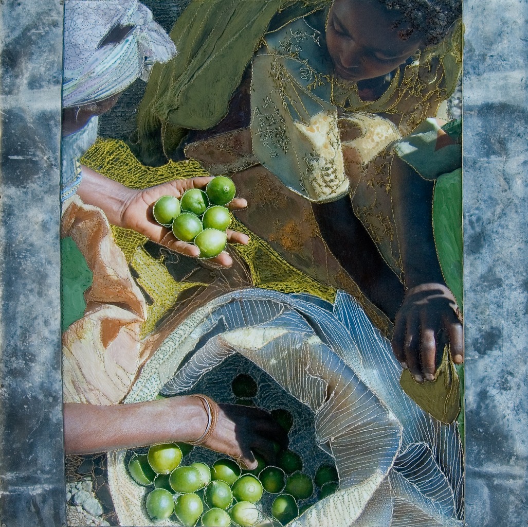 Ik ben een materialen mens, en maak samenvoegingen van verschillende materialen; foto’s, stoffen en borduursels, soms ook gecombineerd met hout, lood en steen, op wisselende formaten