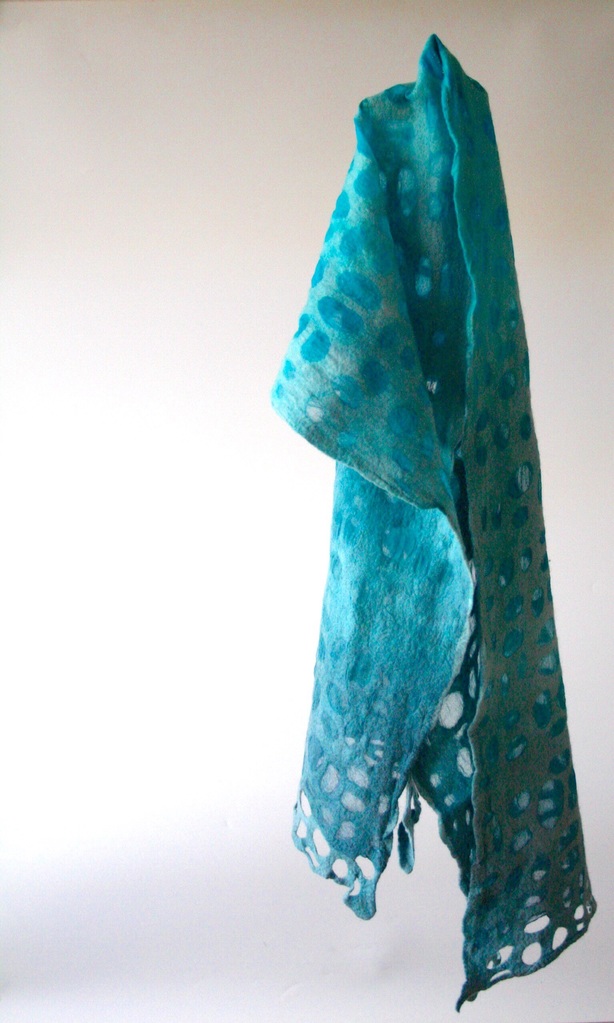 Zijde Blue Wol Vilt Shawl Sjaal Chiffon Geometrisch Blaauw Turqoois Turquoois Geometric Stola Felt Wool Stole