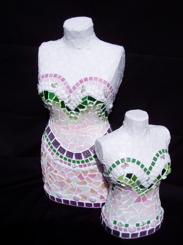 Groen/wit/roze glasmozaïek, 50 en 25 cm hoog