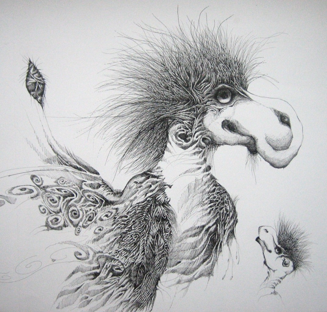 Dodomoeder met Jong Deze tekening is ook als kunstkaart verkrijgbaar in mijn Etsy-shop: http://www.etsy.com/nl/shop/inekesmienkartcards