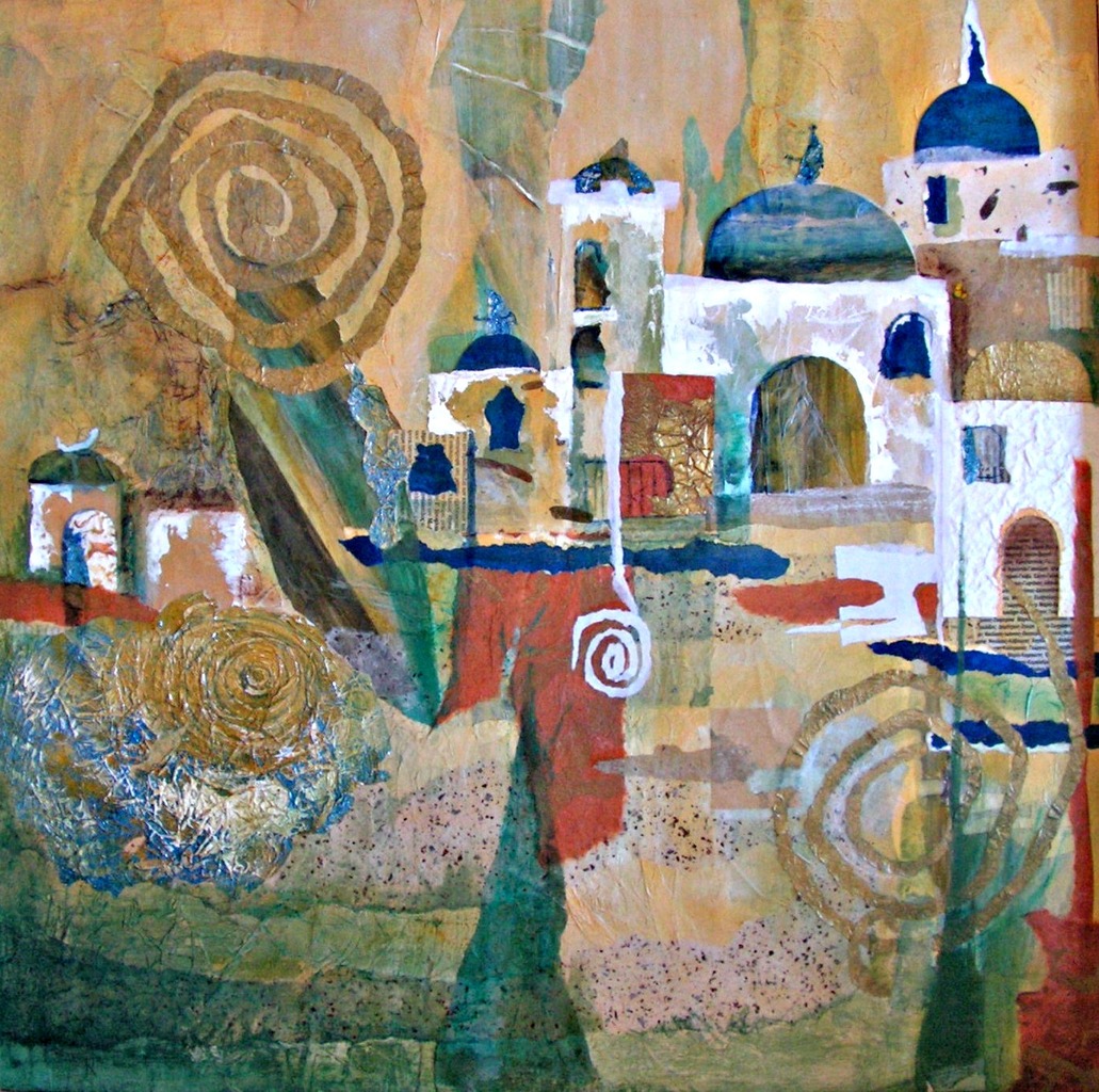 Griekse Cycladen Parikia Paros Mixed Media Collage Acryl