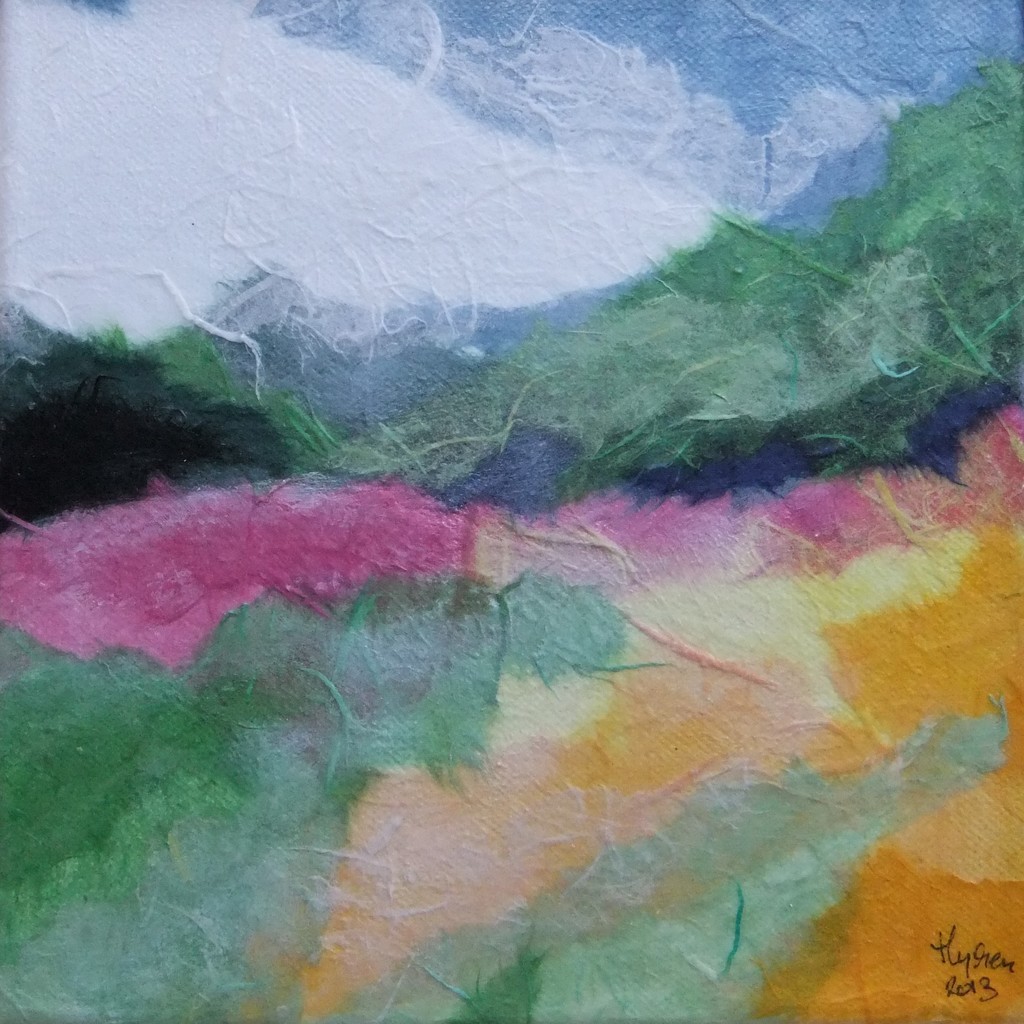 Maakt voornamelijk landschapselementen met voornamelijk bomen als thema en inkt en kleurpapier