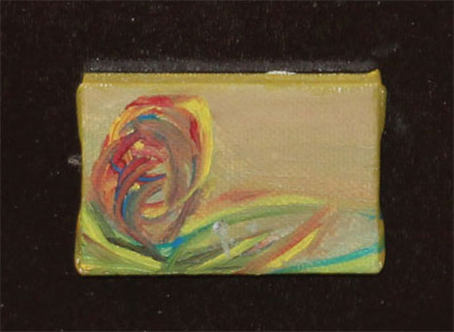 Een minimaal schilderijtje ter grootte van een luciferdoosje.