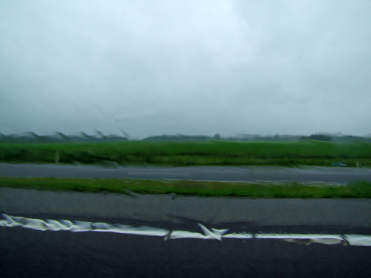landschap gezien vanuit de auto tijdens regen (te bestellen in verschillende formaten en op verschillende ondergronden)