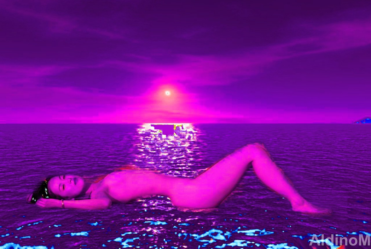 Wit Zee Rood Zwart Paars Vrouw Naakt Water Horizon Blouw