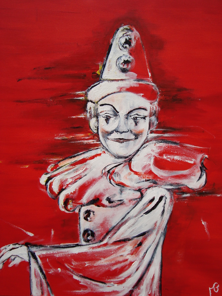Clown, een pierrot. Gemaakt voor een expositie genaamd "lof der zotheid" (boekenweek).