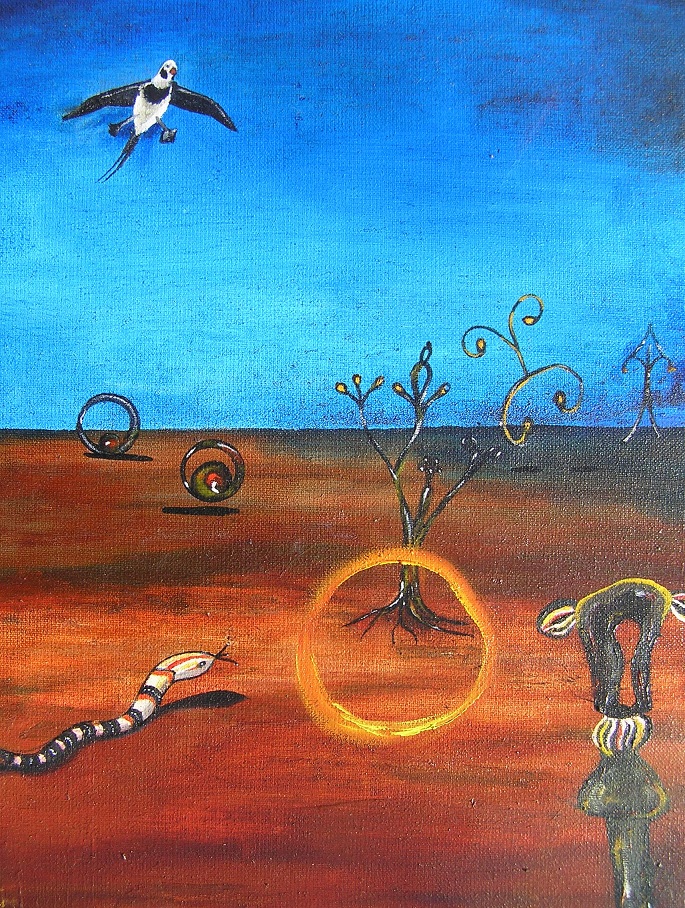 Rock songs uit de jaren '70-'10 vormen de inspiratiebron voor mijn surrealistische schilderijen.