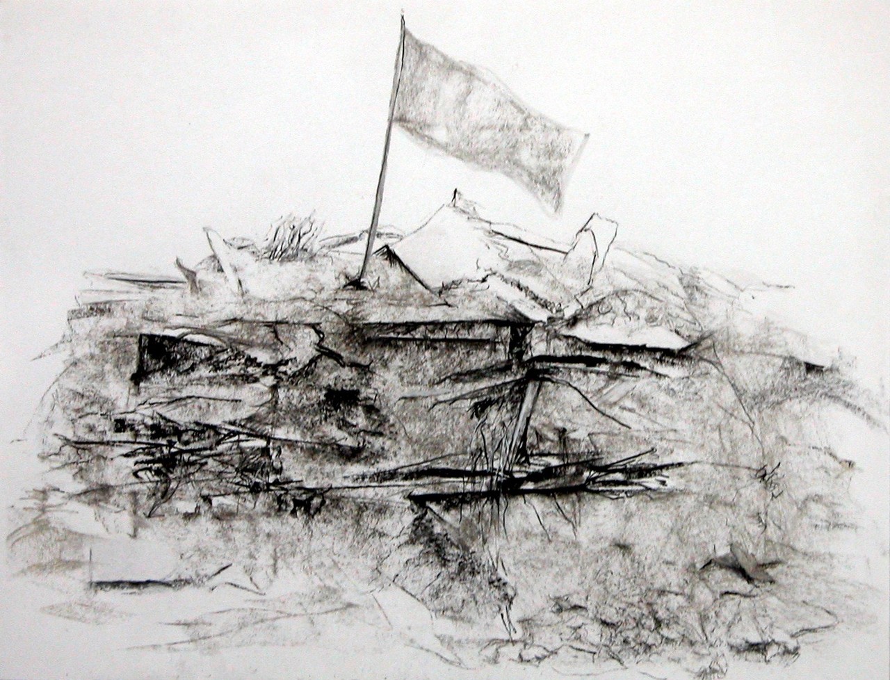 Tekening Ruïne Vlag Ingestort Gebouw Pastel Houtskool
