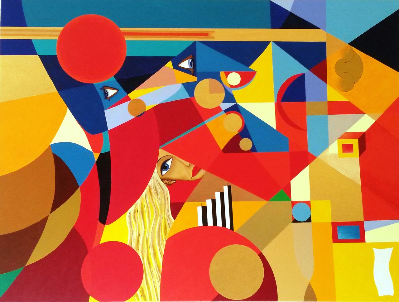 Yellow Blue Woman Red Face Eyse