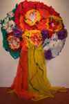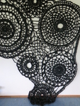 Engelfiguur geschilderd en geborduurd met draad.