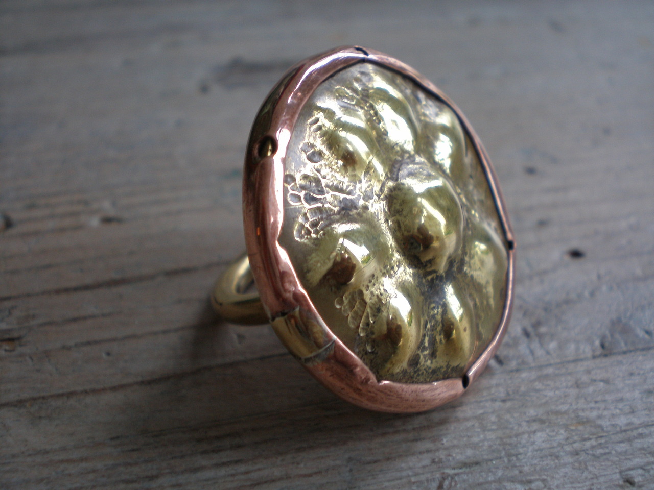 Ring van messing en koper cisseleertechniek
