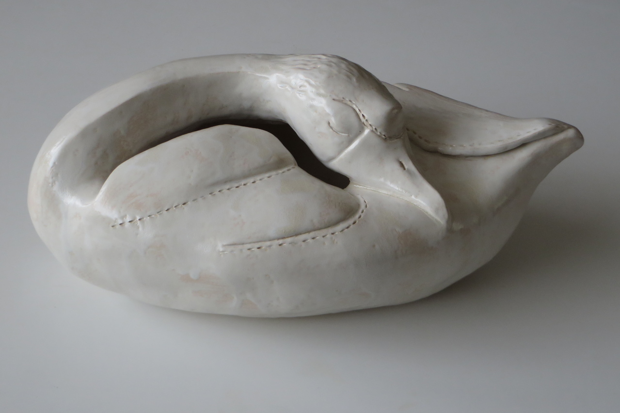 Een liggende slapende zwaan, aardewerk, geglazuurd, op 1050 gestookt