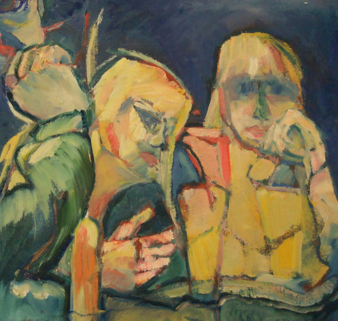 Geabstraheerd Olieverf Figuren Geel/blauw/groen
