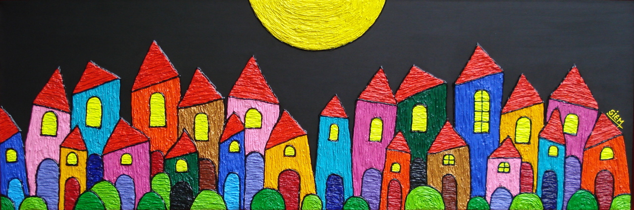 Maan 3d Moon Huisjes Straat Street Houses Maanlicht Moonlight Cozy
