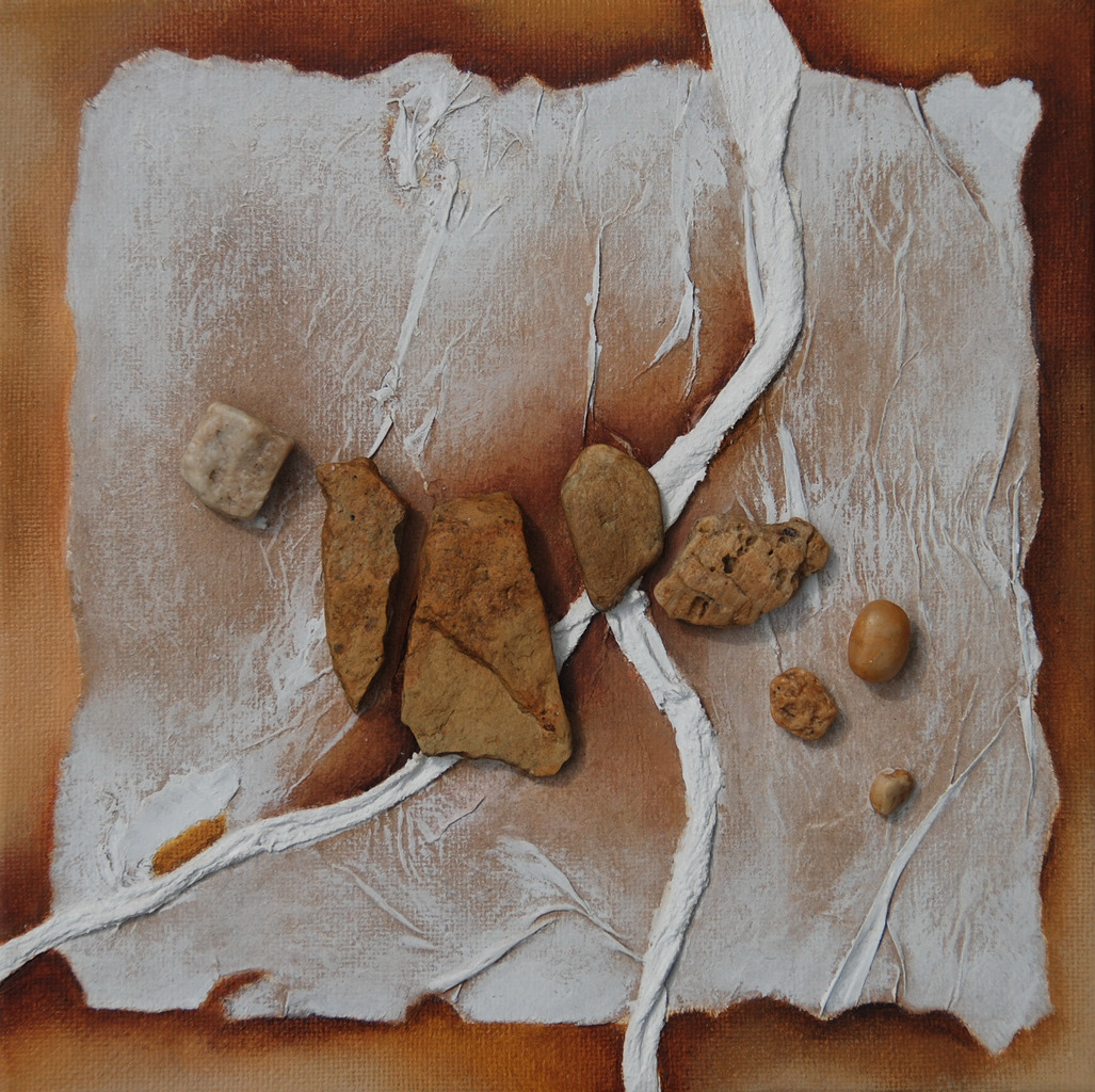 De schoonheid van vergankelijkheid, verweerde materialen en grillige vormen fascineren mij. De rijke kleurschakeringen van aarde ,water en de ruimte, dat is wat mij inspireert tot het maken van mijn materieschilderijen.
