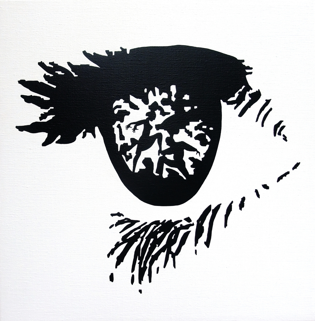 Acryl op 3D-doek. In het oog zit een koppel dat de Paso Doble danst verborgen.