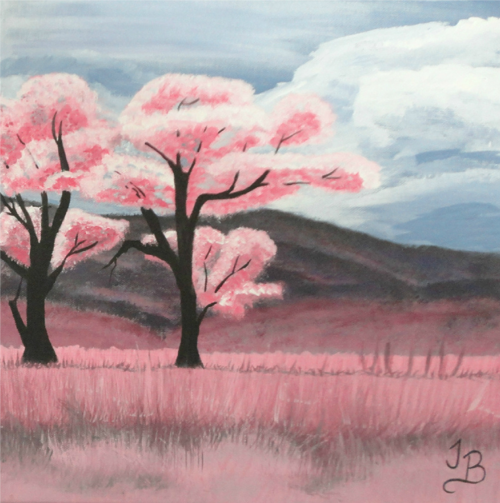 Tweeluik met roze bomen vol in de bloei. (Voor de prijs kijkt u naar het andere deel van het tweeluik. Zijn dus niet los van elkaar te koop.)