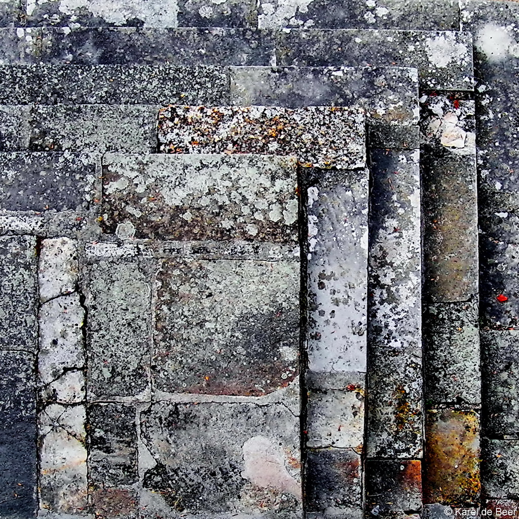 Deze square heb ik van boven naar beneden genomen. Op doorreis in Frankrijk logeerden wij in het charmante kasteel van Paray-le-Frésil ten oosten van Moulins (Allier). 's Ochtends keek ik suf naar buiten en zag beneden me de verweerde treden van het terras waar wij tot laat in de avond hadden genoten van een goed glas wijn. Foto gemaakt in 2006 met een Minolta Z1.